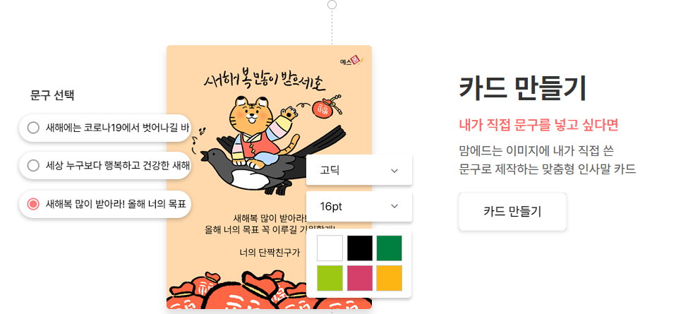 카드 만들기에서 폰트, 폰트 사이즈, 컬러를 선택하실 수 있답니다.