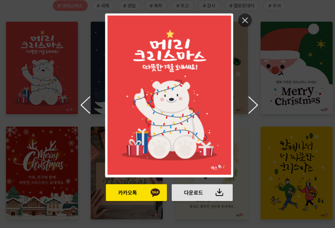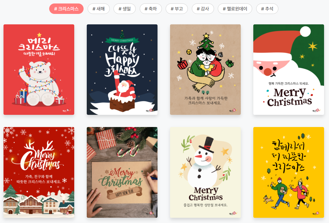 다양한 인사말 카드를 무료로 이용하실 수 있으니