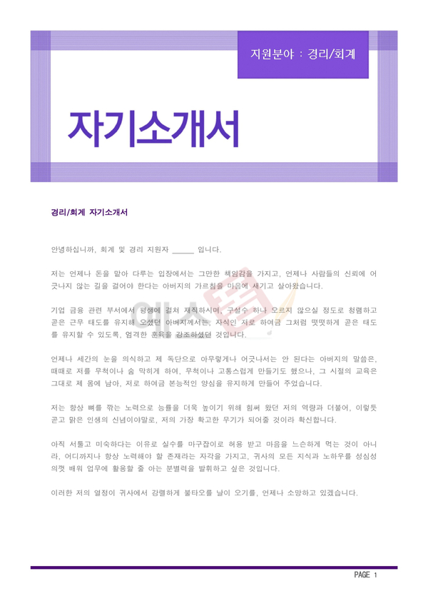 면접용 1분 스피치 (경리/회계) |