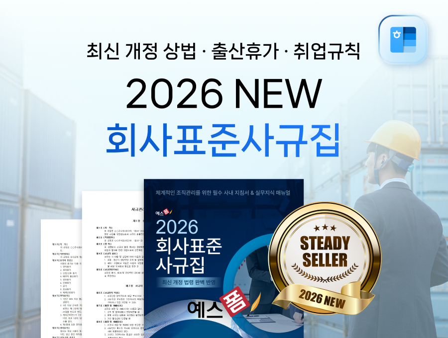 예스폼에서는 273개 규정, 704개 별지서식을 포함한 2026년 회사표준사규집을 제공하고 있으며, 법무 검토를 거친 신뢰도 높은 문서를 통해 누구나 쉽게 사규집을 작성하실 수 있습니다. 지금 바로 예스폼에 방문하셔서 2026년 회사표준사규집을 다운로드하고, 안정적이고 체계적인 기업 운영을 시작해보시길 바랍니다! 💼