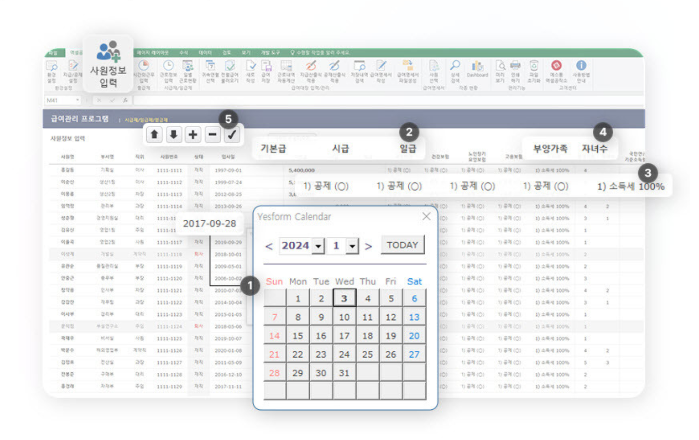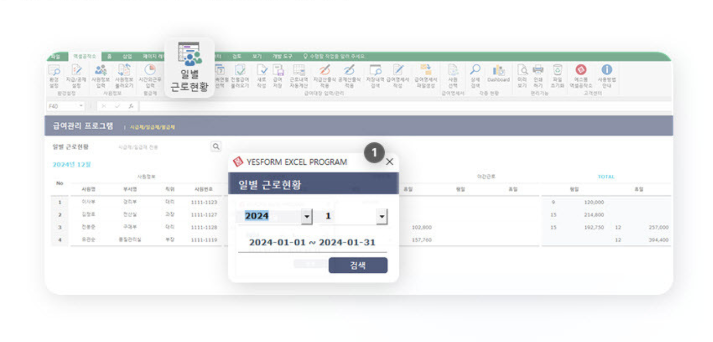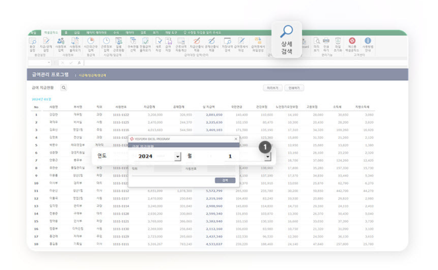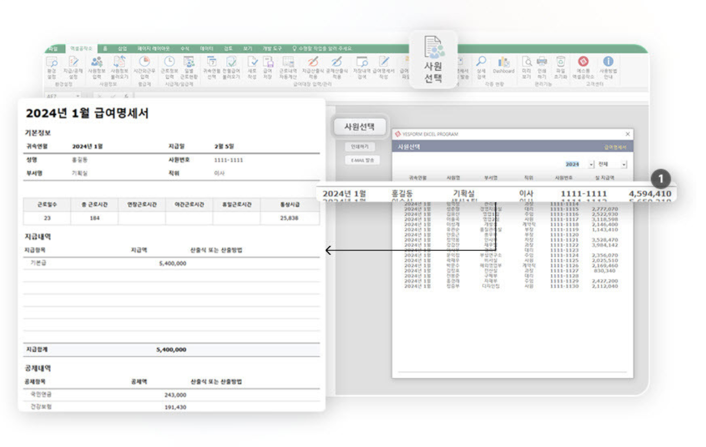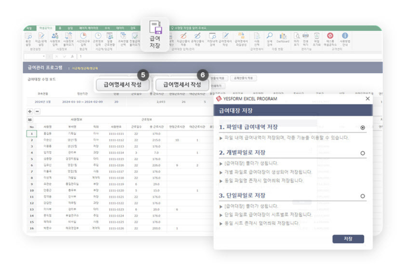 급여관리 Program(급여내역 저장, 각종 증명서 자동작성) - 예스폼 엑셀서식