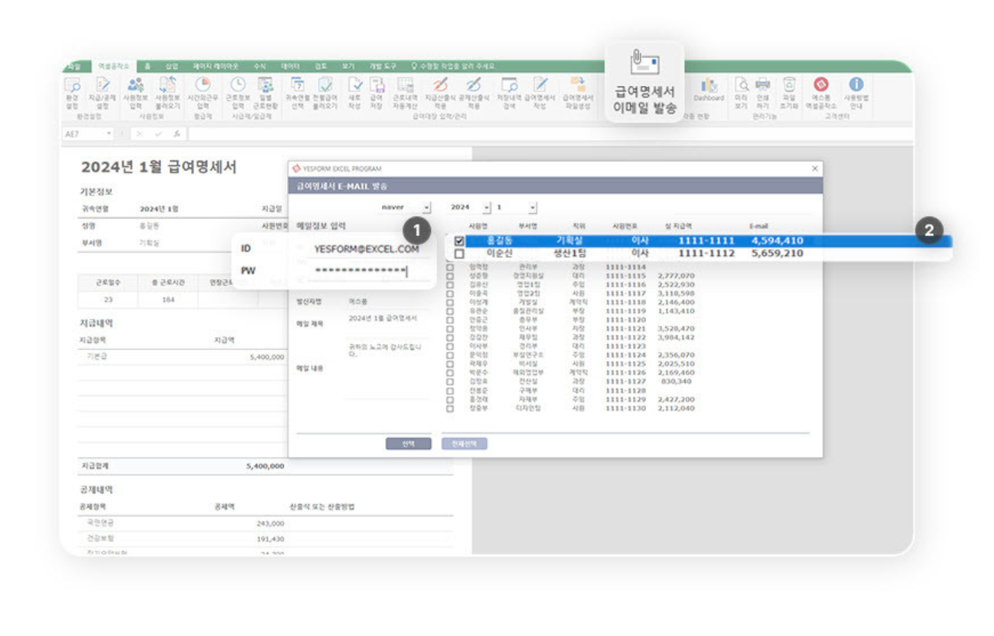 👉 급여명세서 자동작성 및 이메일 발송 기능