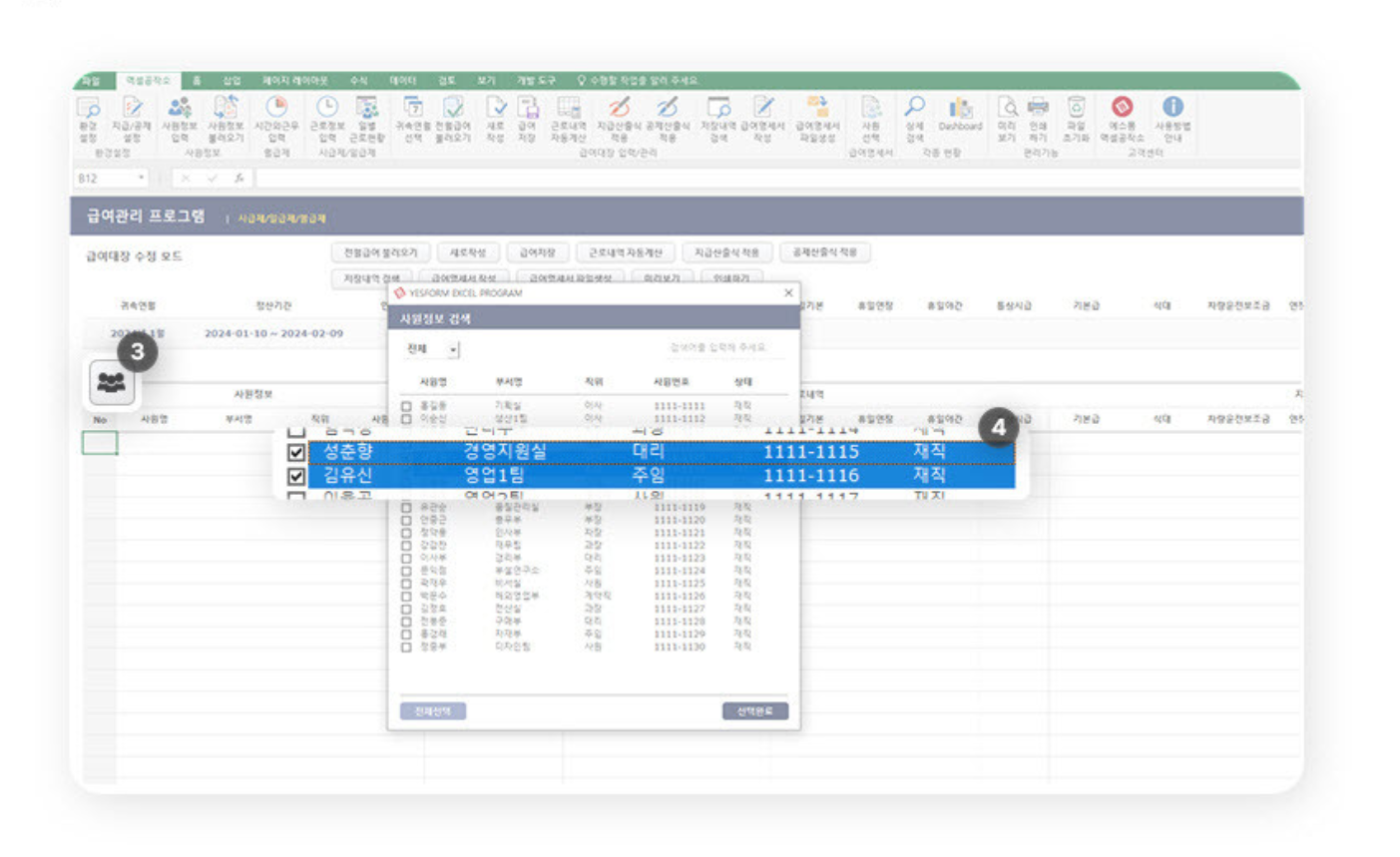 4️⃣ 급여대장 작성을 원하는 사원을 선택합니다.
