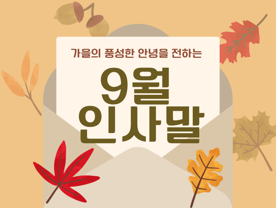 그래서 오늘은 친구들, 거래처와 함께 가정에서도 사용할 수 있는 9월 인사말 문구를 몇 가지 준비해 보았습니다. 제시해 드릴 예문들은 상황에 맞춰 편집하여 활용하실 수 있습니다.