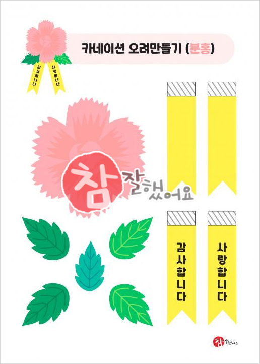 스승의날 얼굴 카네이션 만들기 | 카네이션 오려 만들기 (분홍) | 스승의날 선물 라벨 |