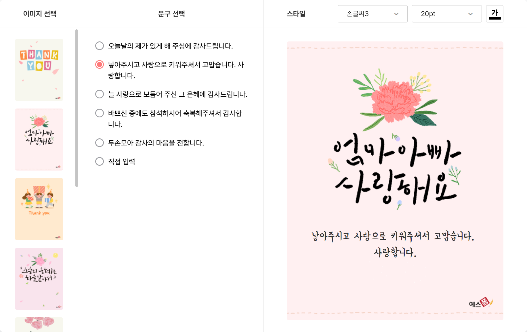 감사와 사랑을 담은 💌카드를 전해 보세요.