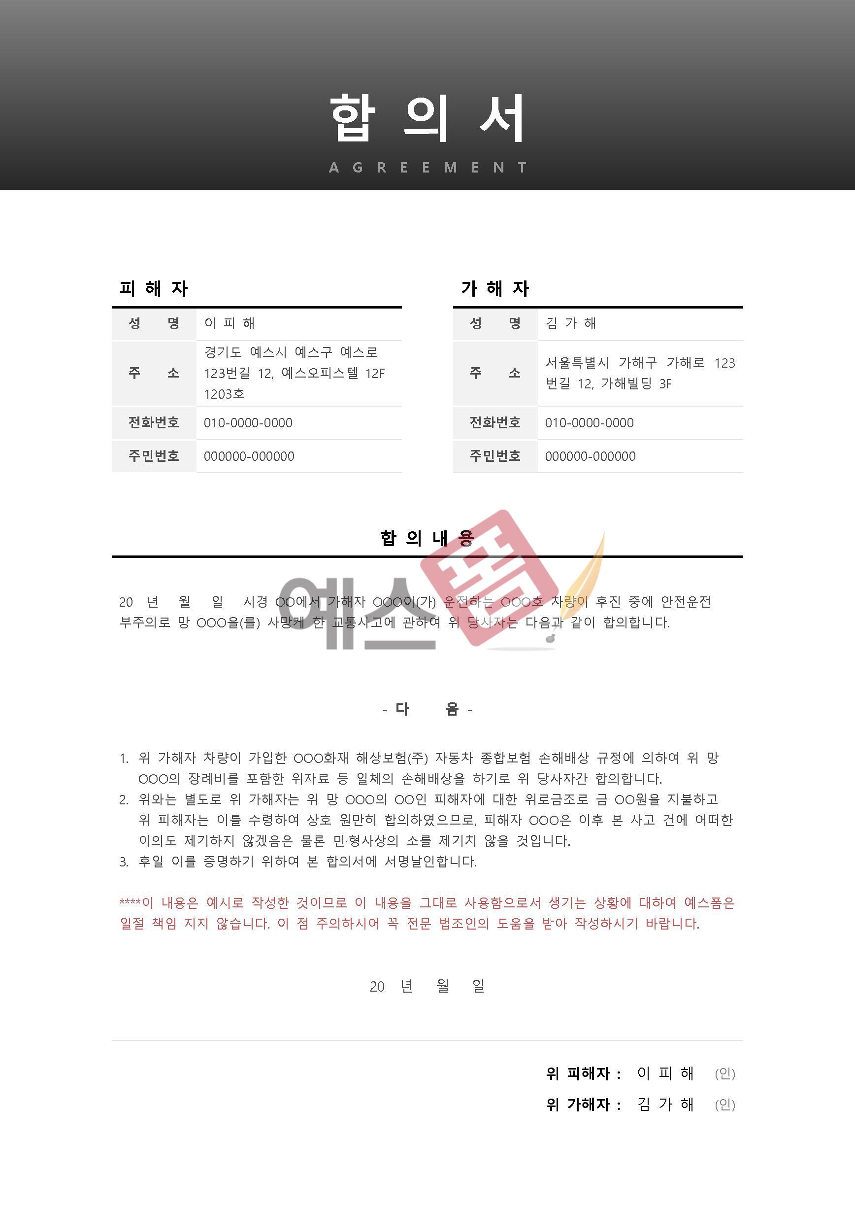 손해배상 합의서(기업합의) | 합의서(입회인포함) |