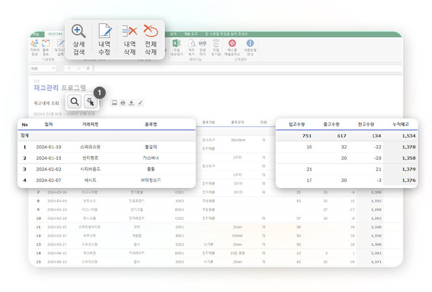 간편 재고관리 엑셀 프로그램(실시간/누적 재고관리) - 예스폼 엑셀서식