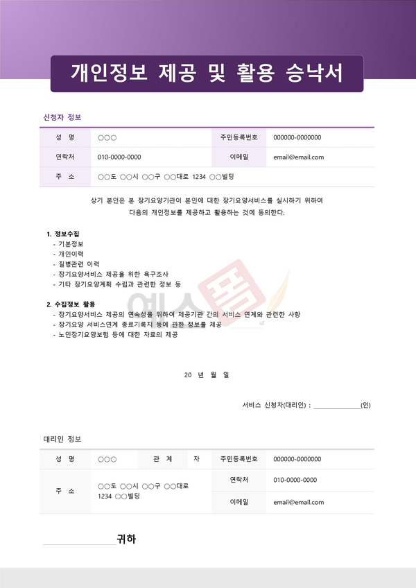 개인정보는 본인의 회사의 소유가 아닌 각자의 고객의 소중한 개인 정보이기 때문에 동의서를 작성할 때 선택은 고객이 직접 선택할 수 있게 해주시기 바랍니다. 그리고 서비스, 회사의 사업 종목에 따라 개인정보를 수집하는 목적 등이 다르지만 저의 예스폼에서 제공드리는 개인정보제공동의서 양식을 활용하시면 보다 편하게 동의서를 작성하실 수 있으실 겁니다.