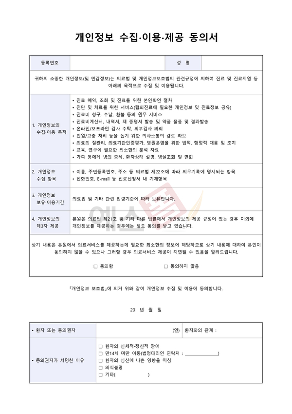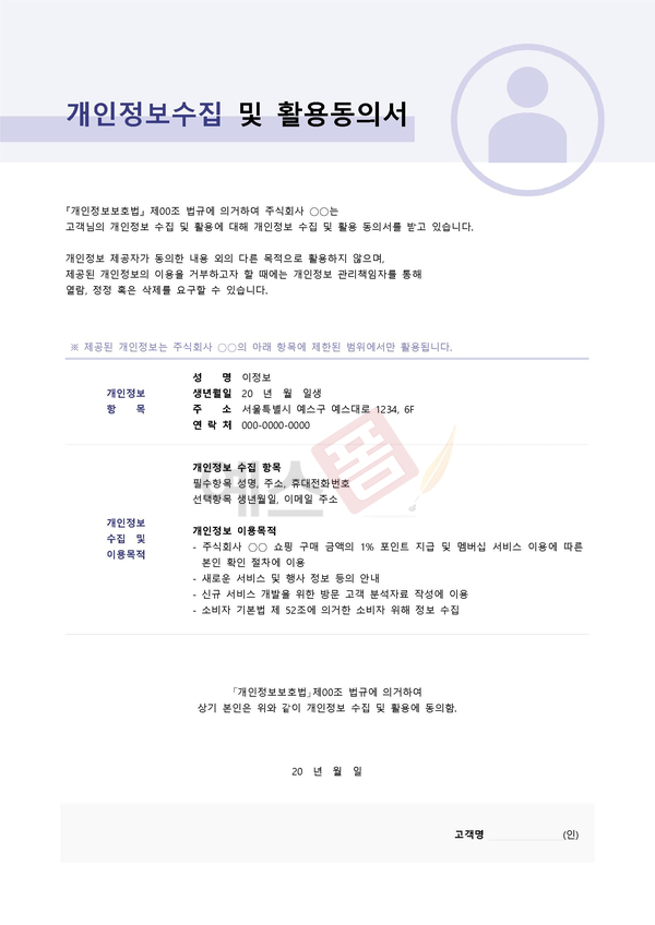 개인정보수집 및 활용동의서 | 개인정보 제공 및 활용 승낙서 | 개인정보 수집·이용·제공 동의서 |