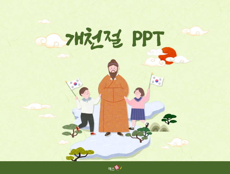 물론 학자들 사이에서도 고조선의 정확한 건국일자에 대해 논란이 있기는 하지만, 우리 민족의 뿌리가 되는 나라가 고조선임을 부정하는 사람을 없을 것 같은데요. 한민족의 역사가 시작된 소중한 개천절, 오늘은 예스폼에서 개천절을 기념하는 ppt템플릿 양식을 준비해보았습니다.