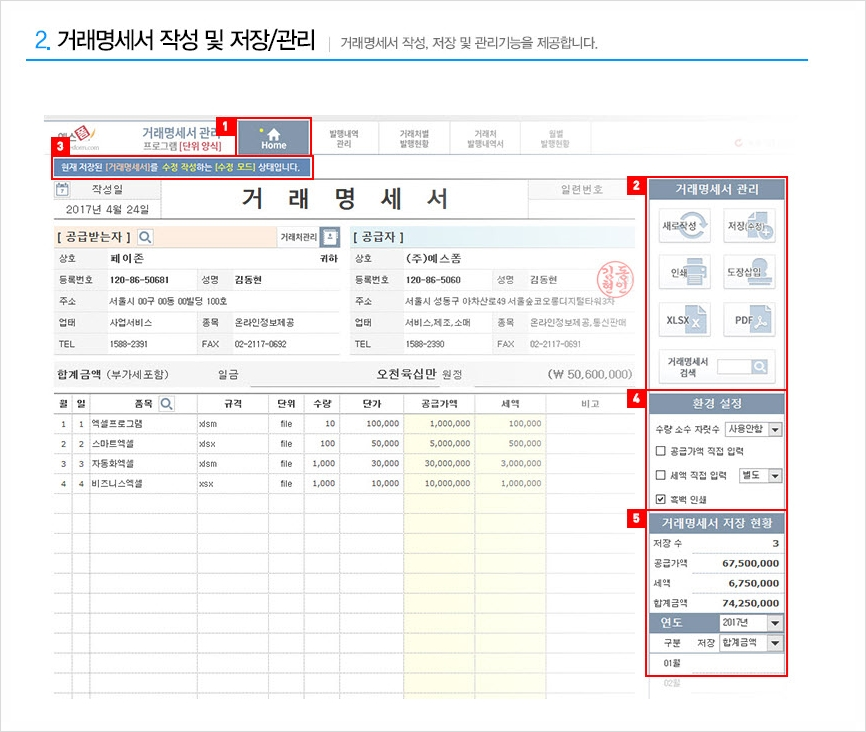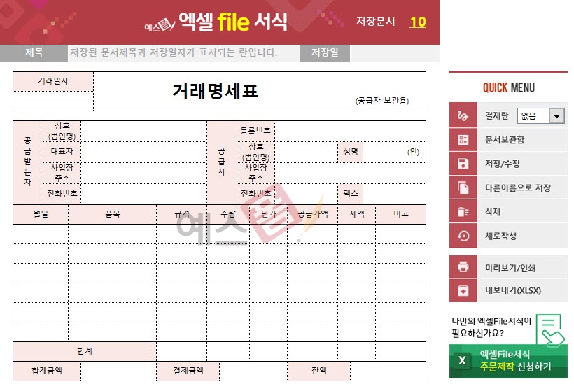 거래명세서 엑셀 프로그램