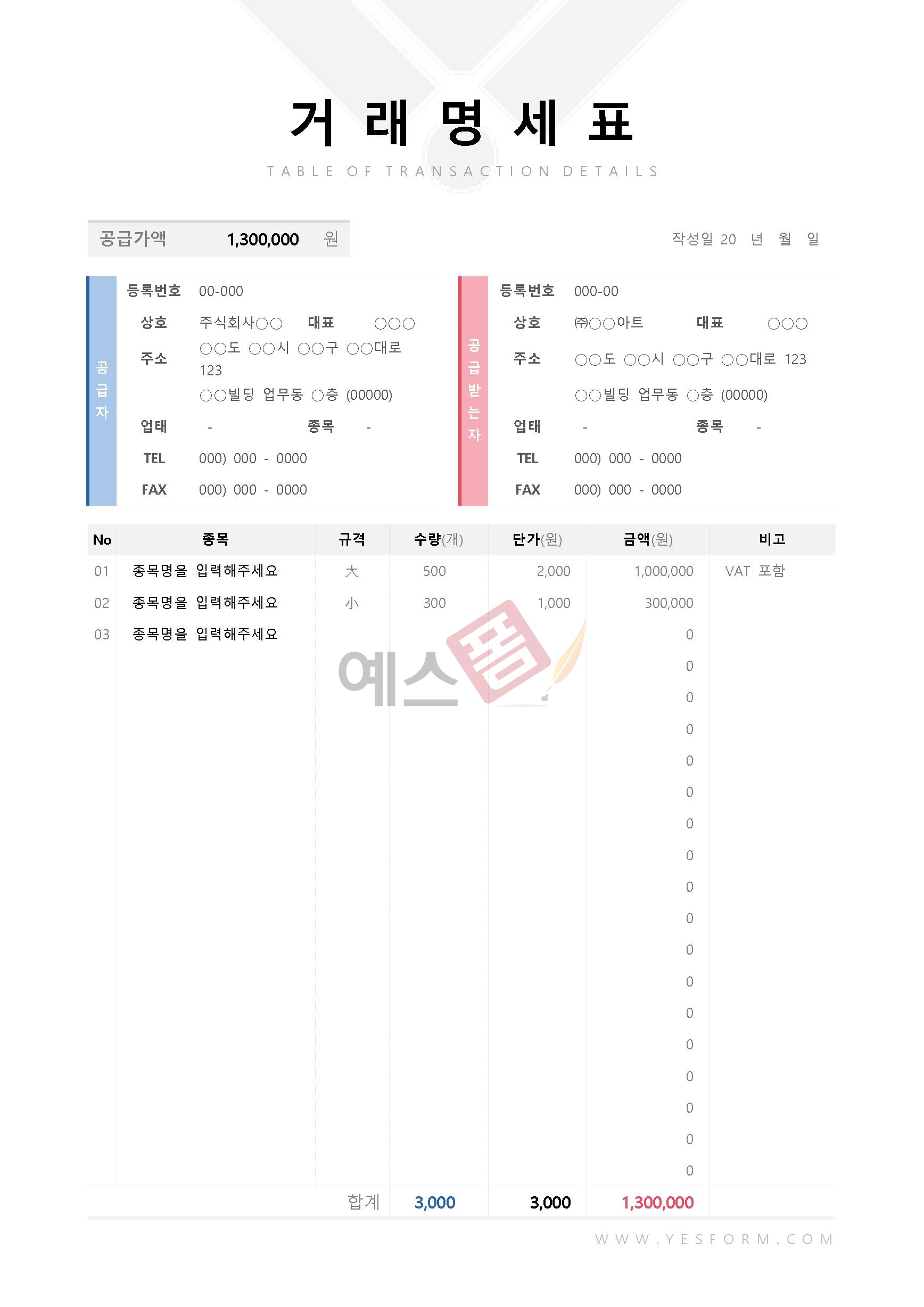 거래명세서는 고정 양식이 없다