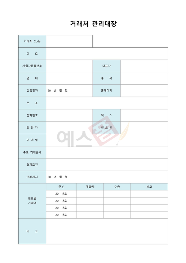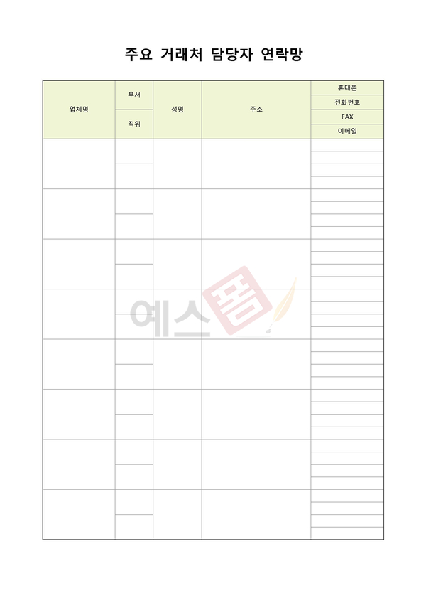 | 거래처 관리대장 | 거래처 출장보고서 | 주요 거래처 담당자 연락망 |