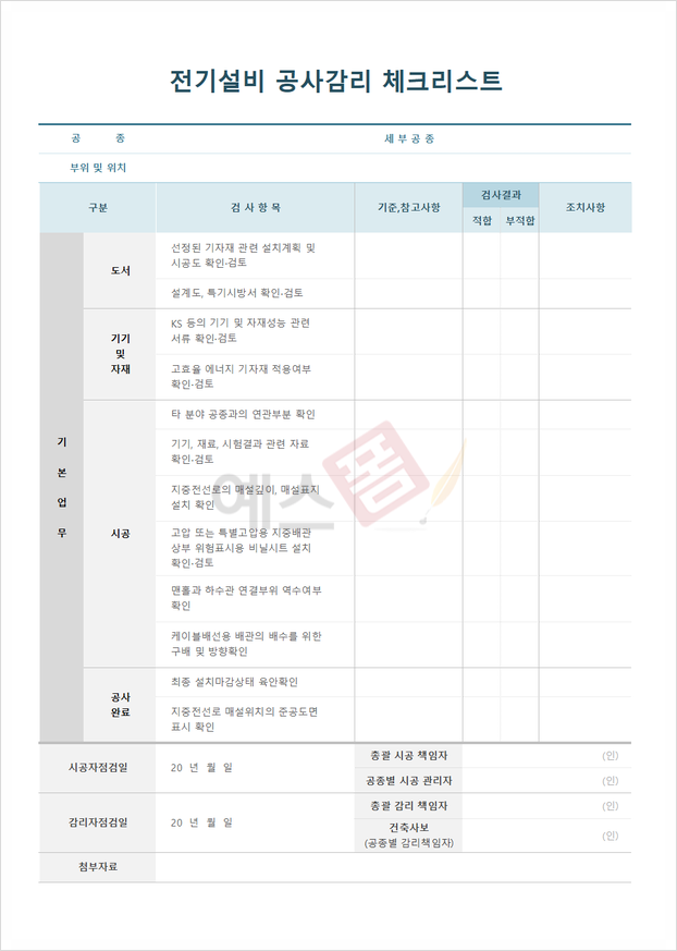 전기설비 공사 감리를 위한 체크리스트입니다.