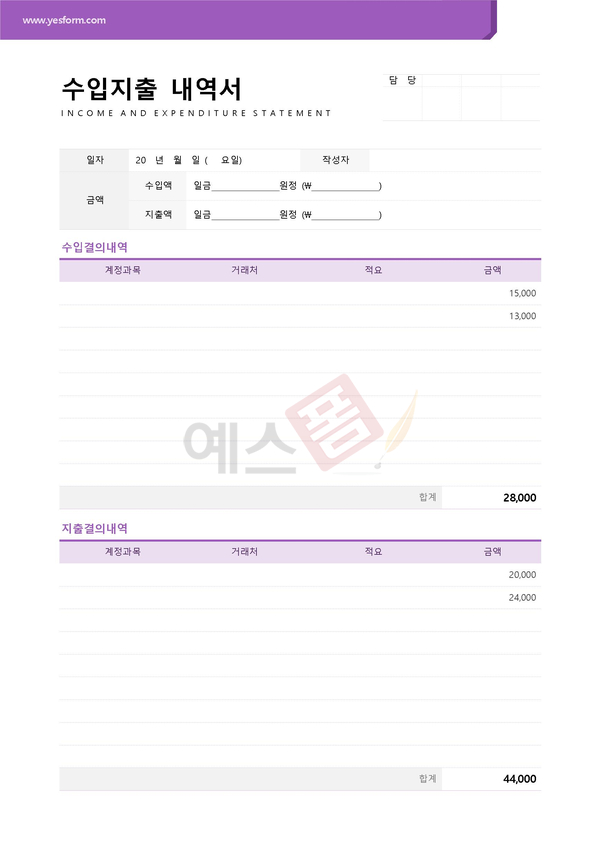 오늘은 예스폼에서 경리/회계 담당자님들을 위해 깔끔하게 정리된 경리부 서식을 준비했습니다.