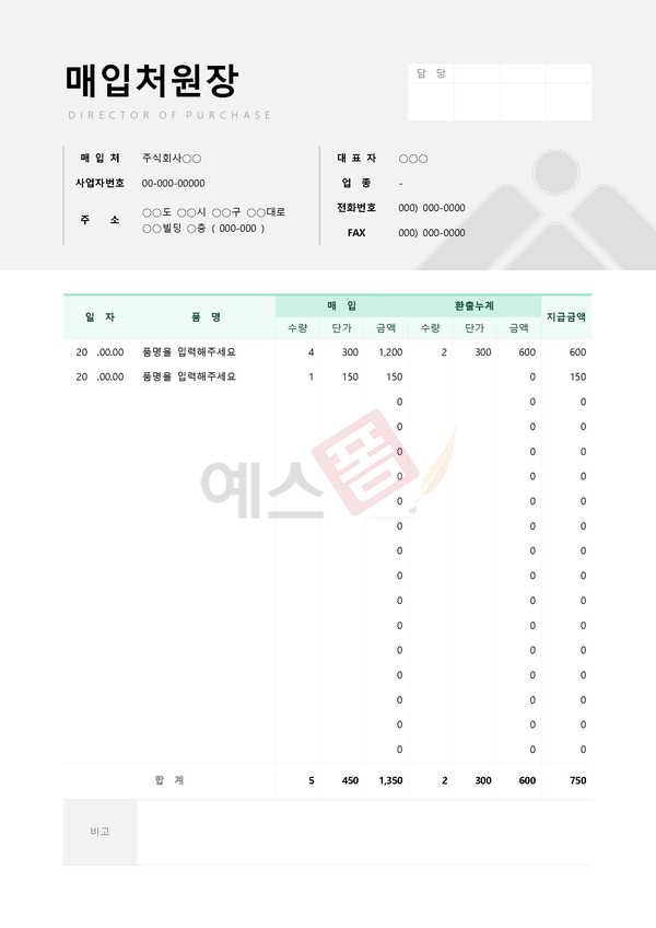 상품 및 서비스를 판매하거나 필요한 물품을 구매했을 때 발생한 거래내역을 기록하는 양식입니다.