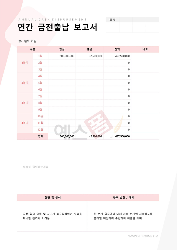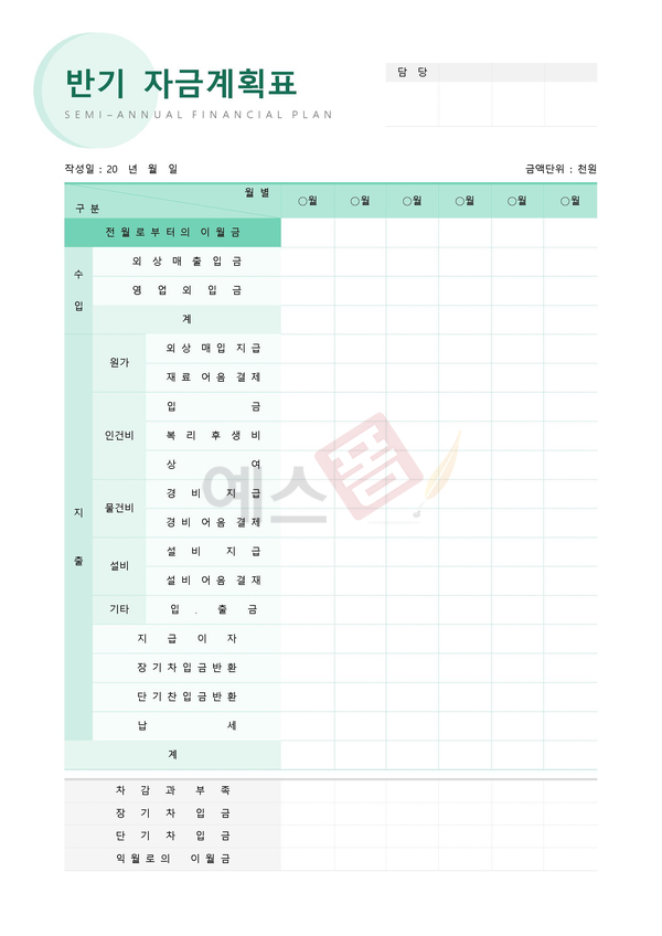 | 연간 금전출납 보고서 | 반기 자금계획표 |