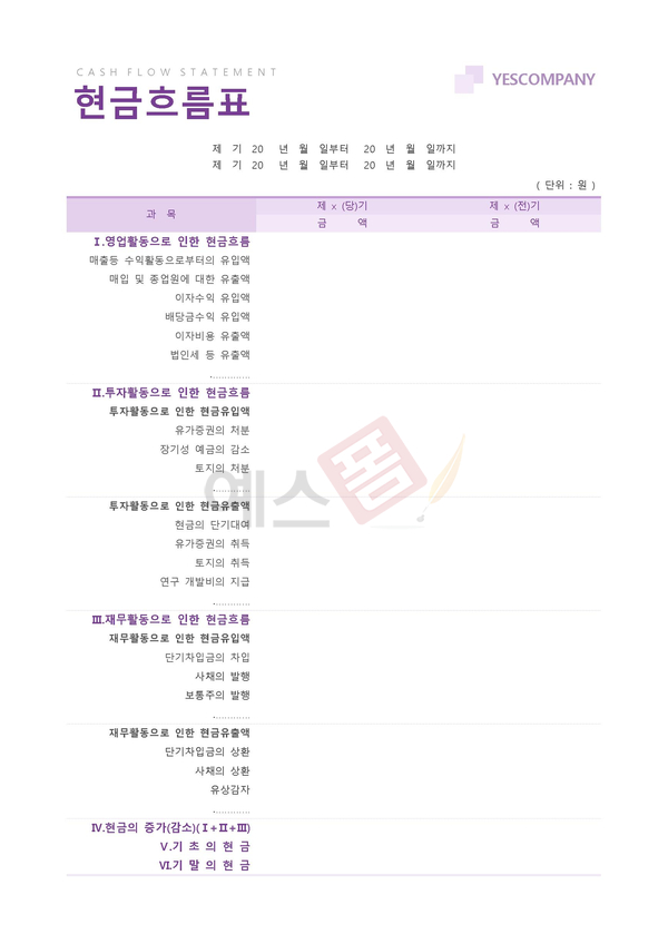 | 자금사용 기안서 | 현금흐름표 | 외상매출대금 청구서 |