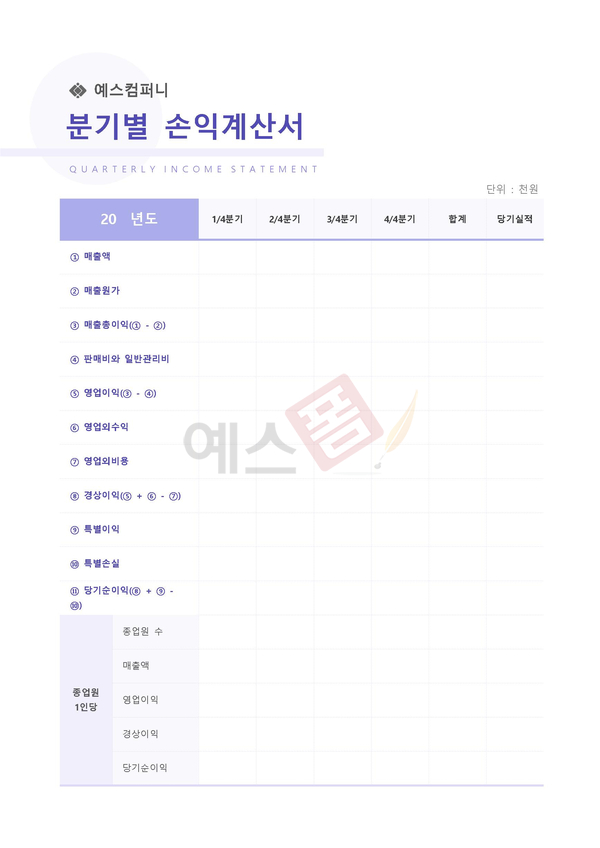 | 일일 정산보고서 | 분기별 손익계산서 |