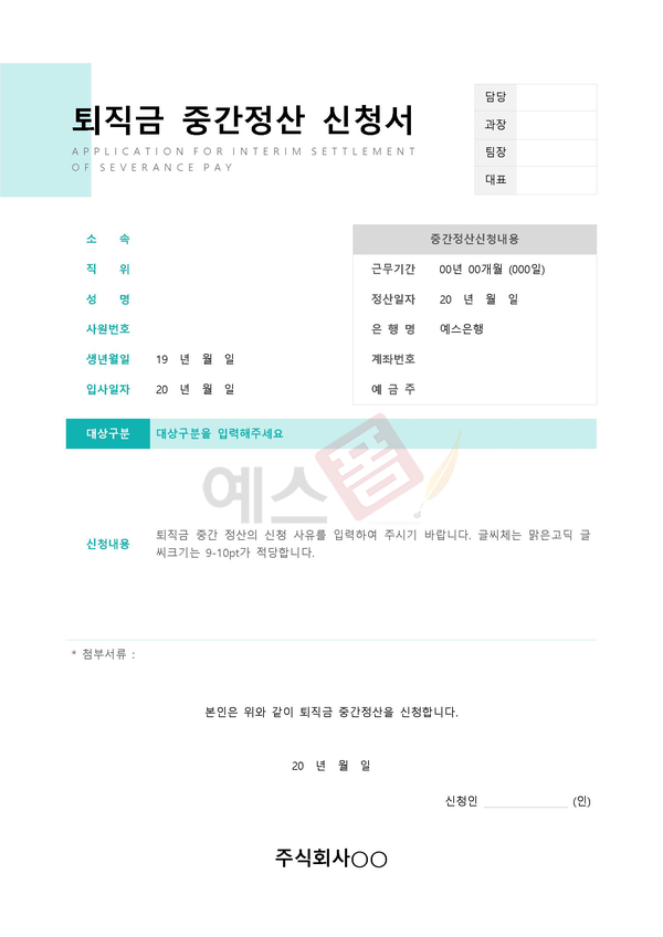 | 퇴직금 중간정산 신청서 | 예상퇴직금 확인서 | 임금체불 확인서 |