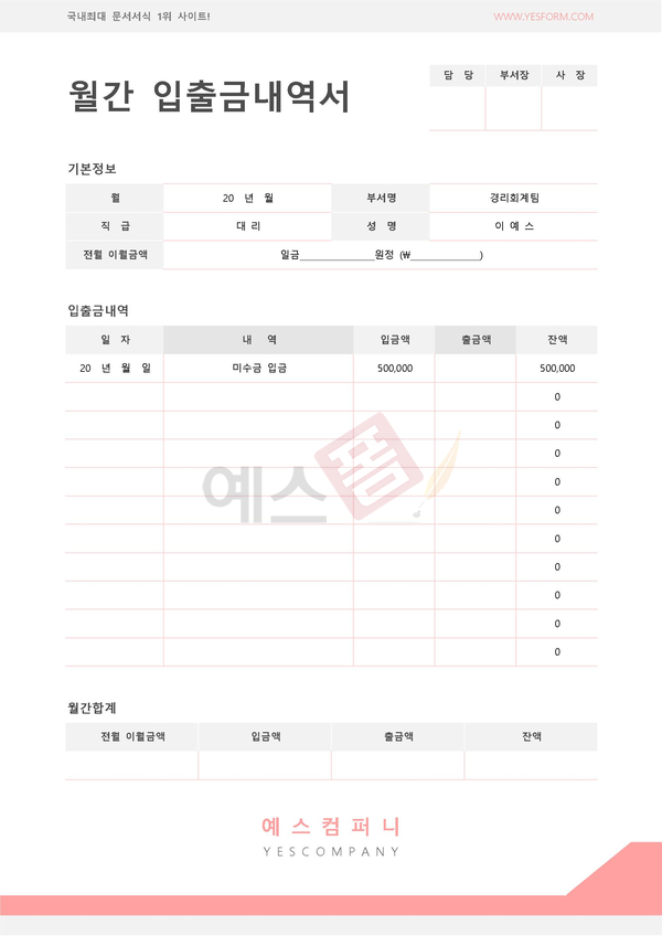 오늘은 예스폼에서 경리/회계 담당자님들을 위해 깔끔하게 정리된 경리부 서식을 준비했습니다.