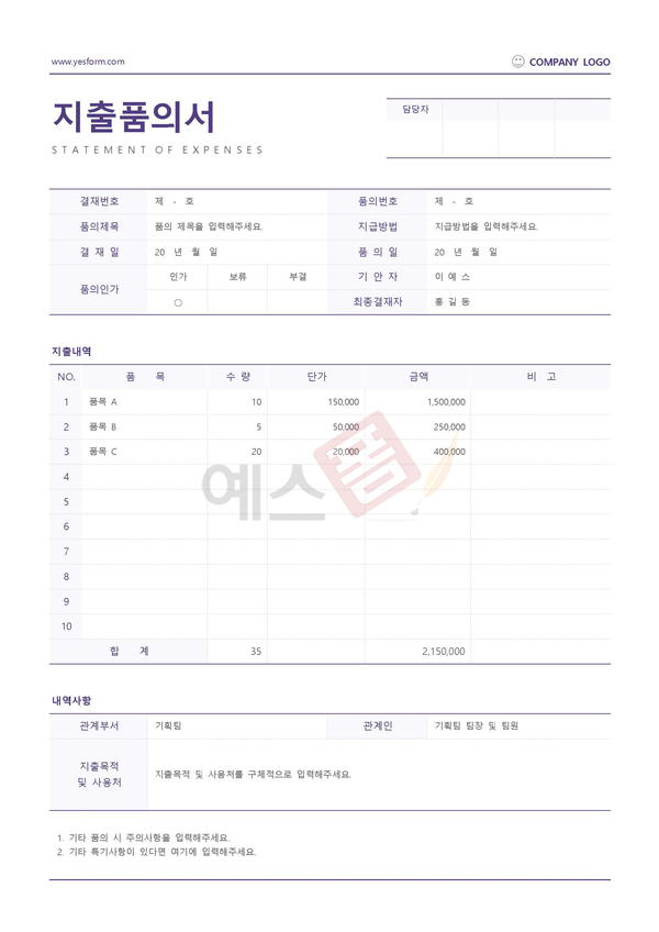 실무에서 바로 활용하실 수 있도록 디테일 한 부분까지 신경 써서 제작된 예스폼 프리미엄 서식을 만나보세요 🤗