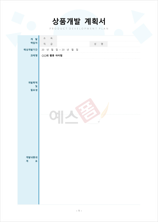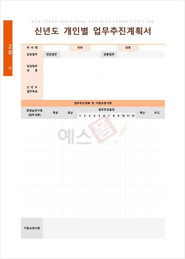 | 상품개발 계획서 | 설비투자 계획표 | 신년도 개인별 업무추진계획서 |