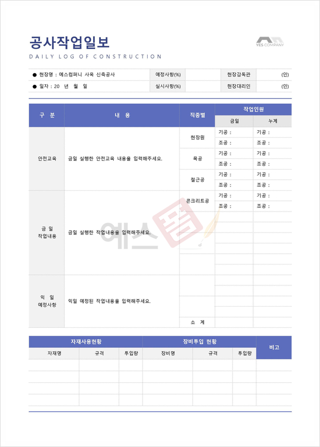 | 일일 작업일지 | 일일 작업일보 | 공사작업일보 |