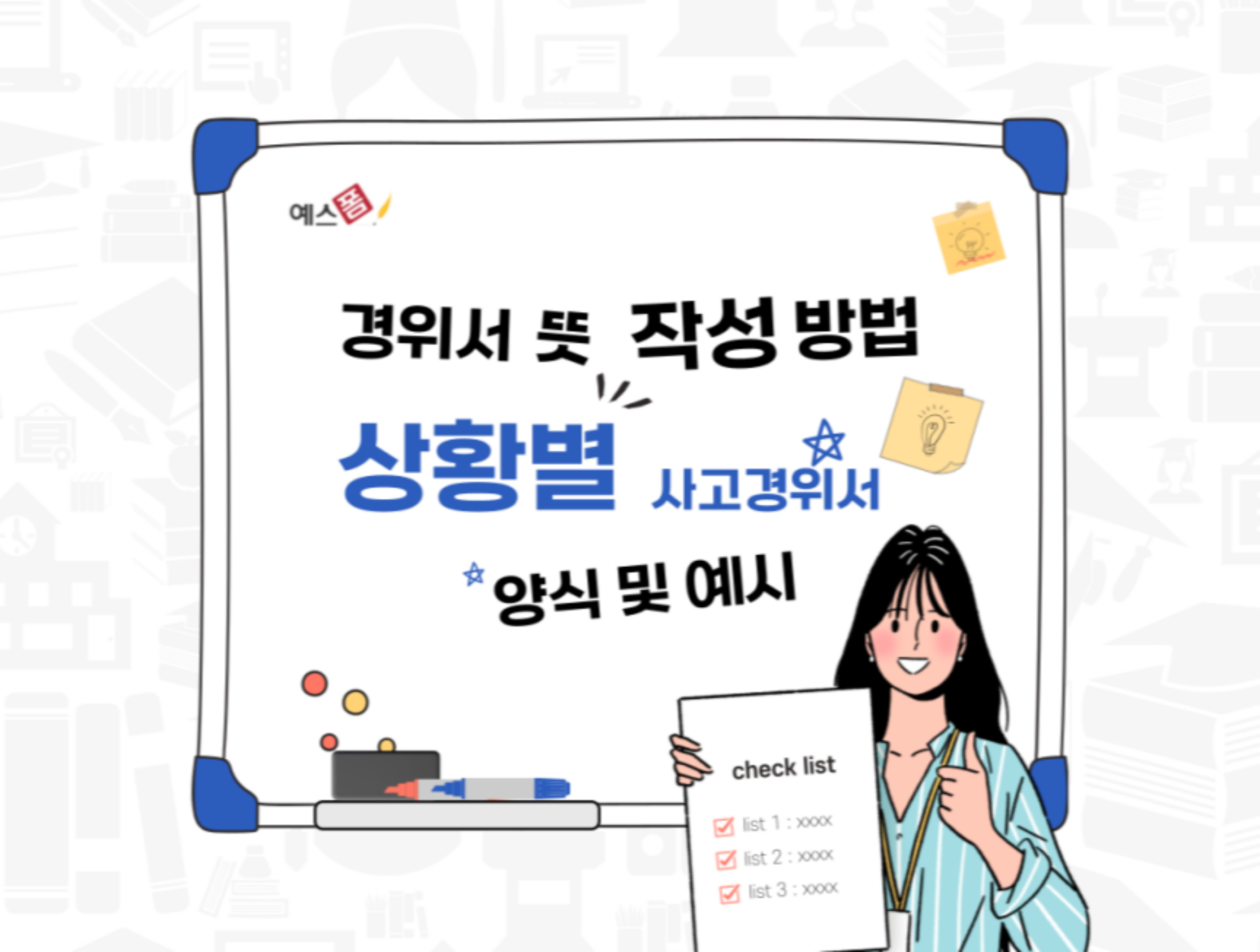 오늘은 예스폼에서 경위서의 뜻과 작성 방법, 상황별 사고경위서 양식과 예시에 대해서 알아보도록 하겠습니다.