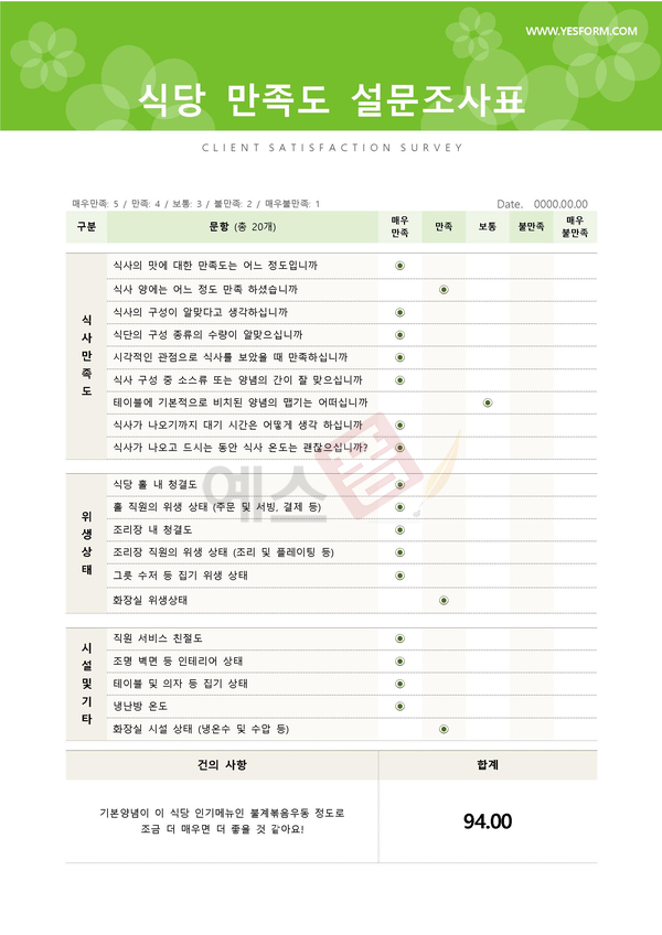 | 고객 만족도 조사서 | 고객 만족도 조사 설문지 | 식당 만족도 설문조사표 |