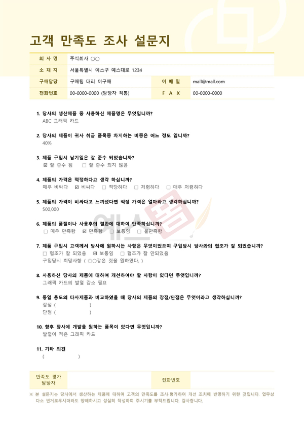 고객 만족도 설문지 양식