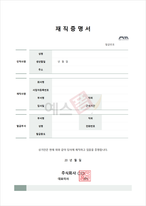 📌 예스폼 재직증명서(사업자등록번호 포함)