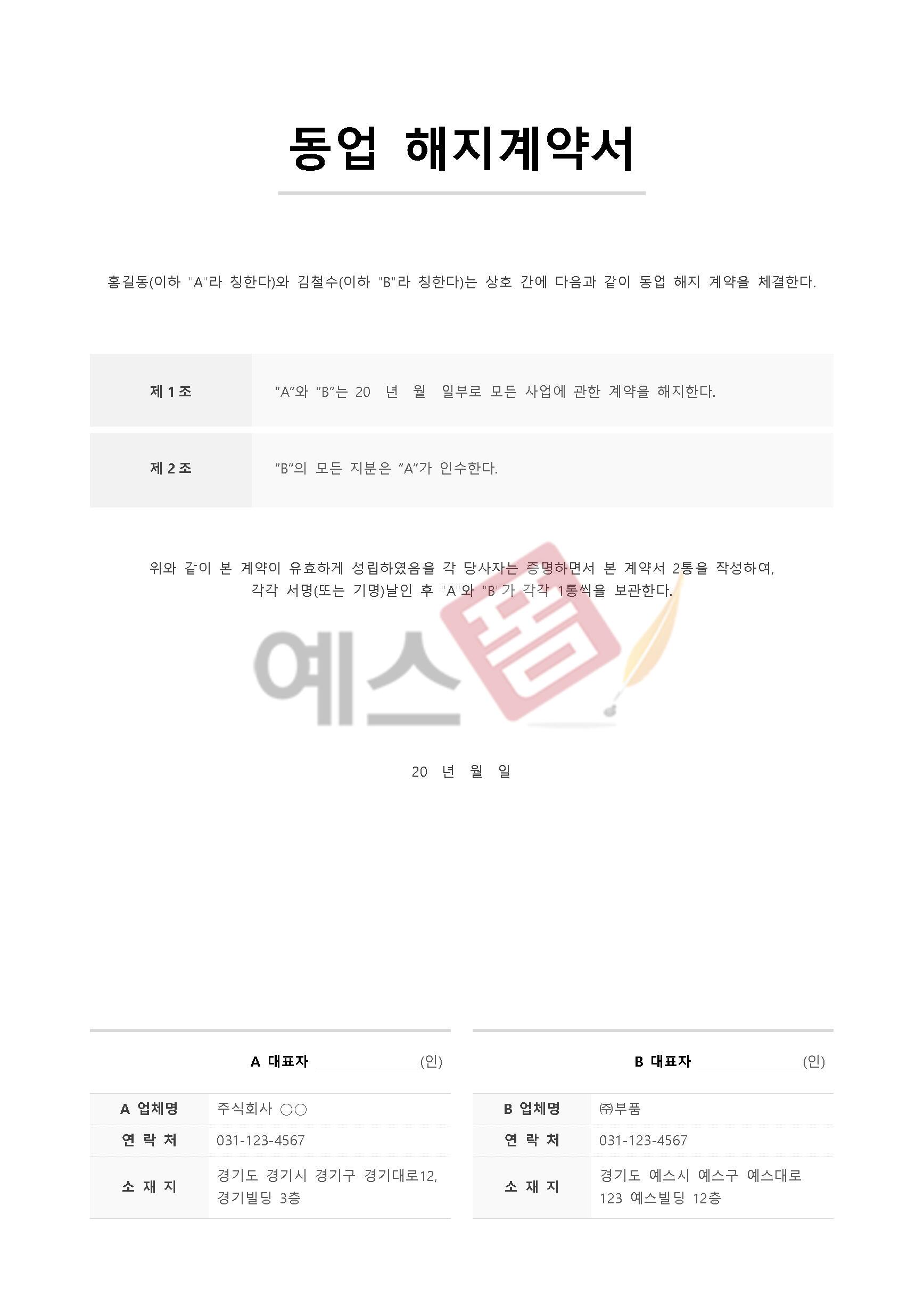 오늘은 예스폼에서 공동투자약정서 작성요령 및 양식에 대해서 알아보도록 하겠습니다.