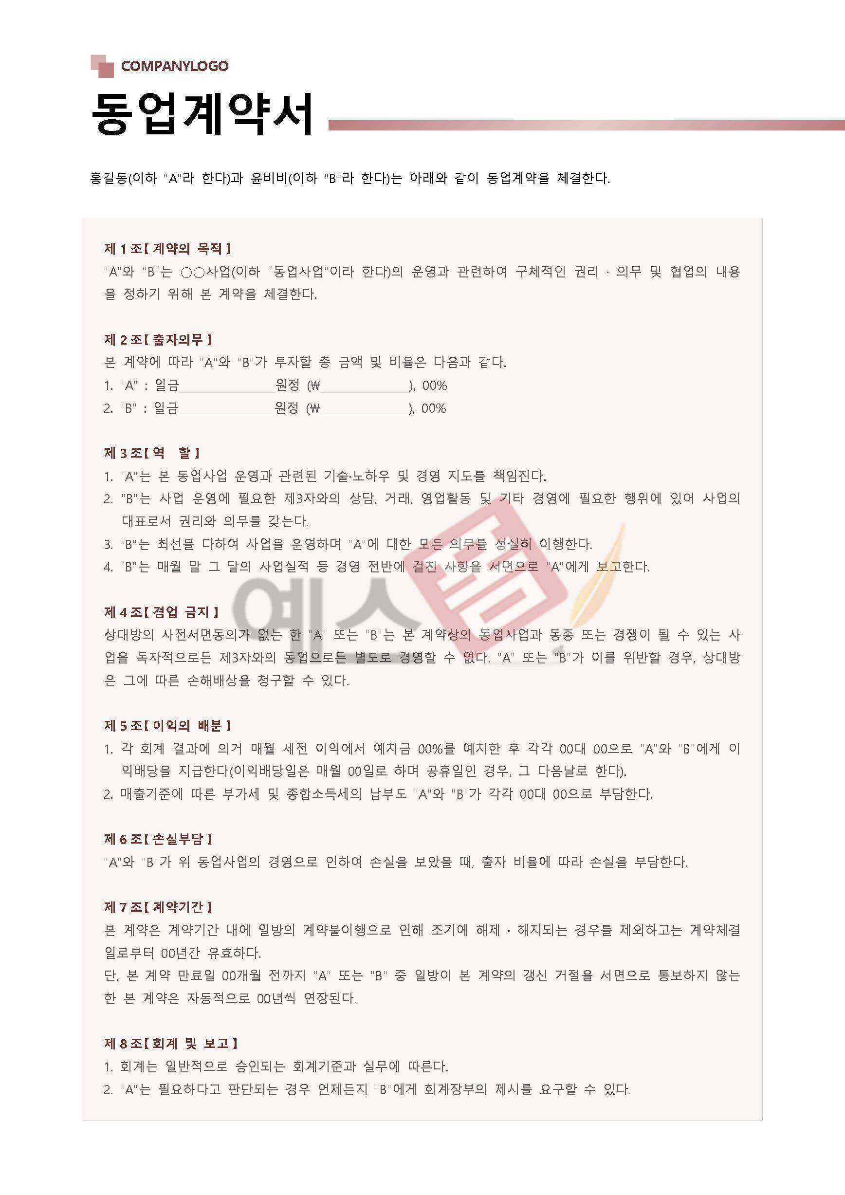 | 동업계약서(주주간동업) | 동업계약서(표준일반형) |
