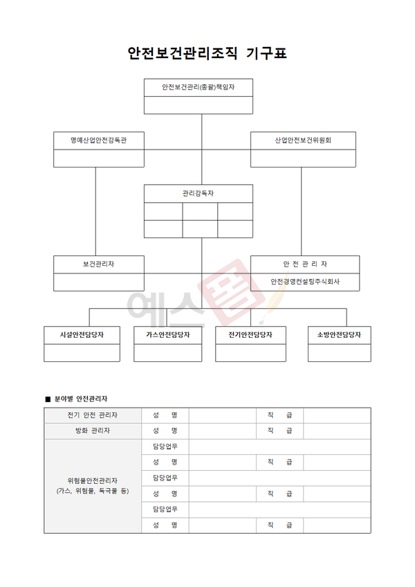 | 안전보건관리계획서 | 안전보건 세부업무추진 계획표 | 안전보건관리조직 기구표 |
