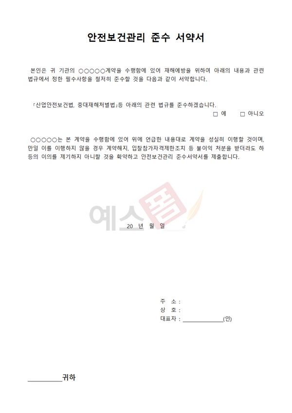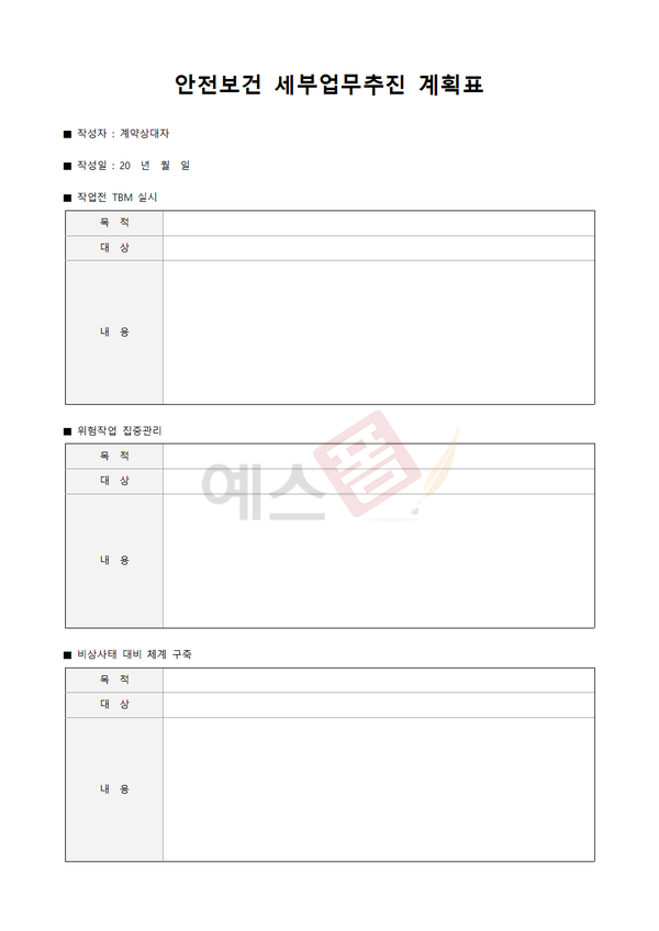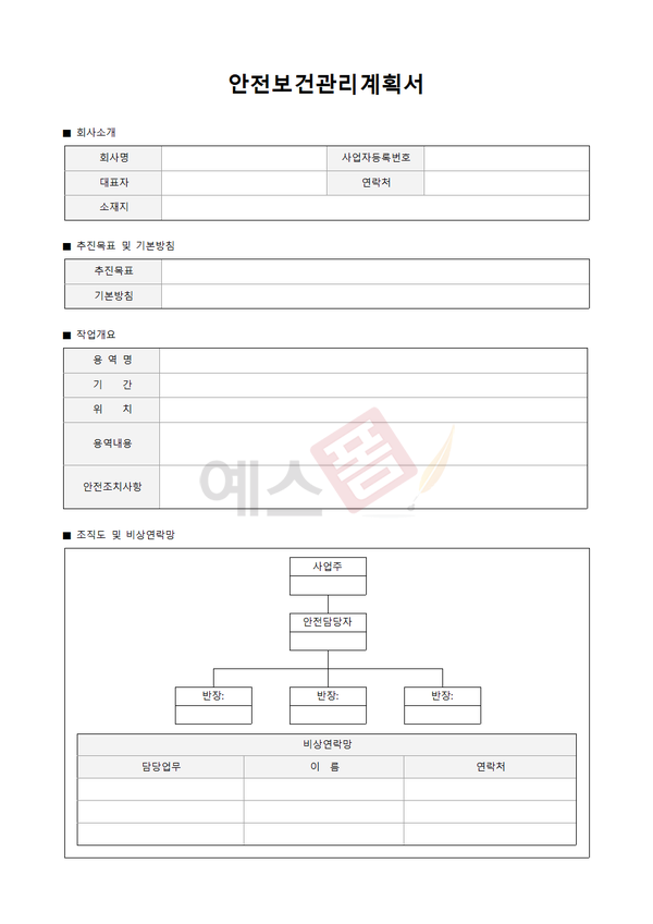 오늘은 예스폼에서 안전한 근무환경 조성에 필요한 안전보건관리계획서 양식과 작성방법을 함께 알아보도록 하겠습니다.