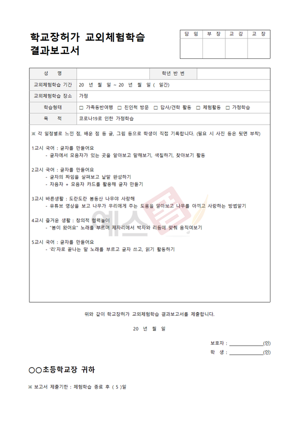 | 교외체험학습 결과보고서 (코로나 가정학습) |