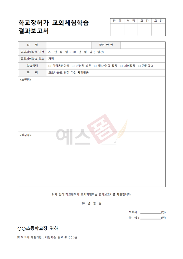 | 교외체험학습 결과보고서 (코로나 가정학습) |