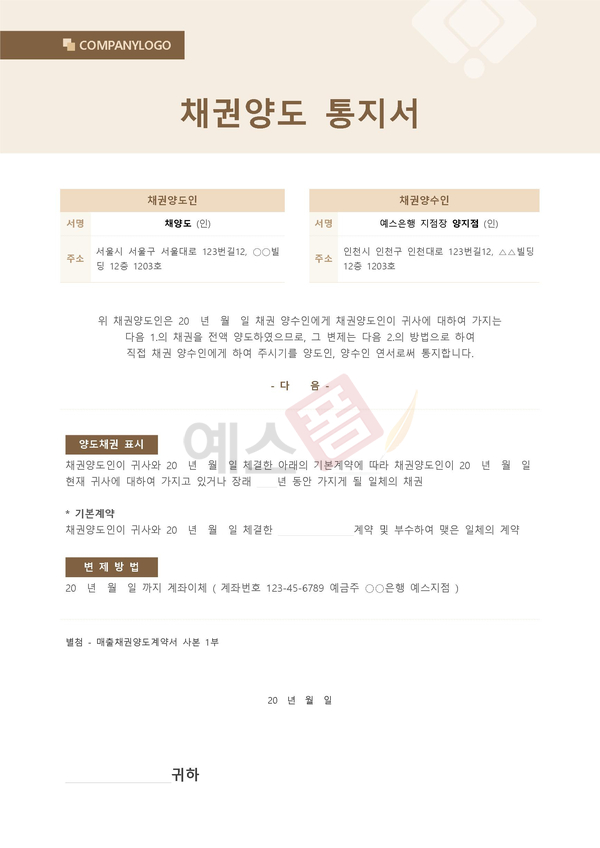 이러한 채권양도통지서를 작성할 때에는 당사자가 반대의 의사를 표시한 경우에는 양도하지 못하도록 하며, 채권양도 통지서를 작성할 때까지는 통지 내용을 명확하게 기재하는 것이 좋은데요. 또한 채권을 양도에 대한 통지 날짜를 정확히 기재하여 일자에 맞춰 해당 채권 양도를 꼭 받을 수 있도록 하고, 통지인의 서명과 수신인을 명확하게 기재하는 것 역시 올바른 채권양도통지서를 작성하는 방법이라 볼 수 있답니다. 이 밖에도 채권양도통지서를 작성하는 방법으로는 통지서의 내용을 보다 간결하고 핵심만 나타나도록 명확하게 작성하는 것이 필요하므로 이를 참고하시어 올바른 채권양도통지서를 작성해 보시기 바라겠습니다.