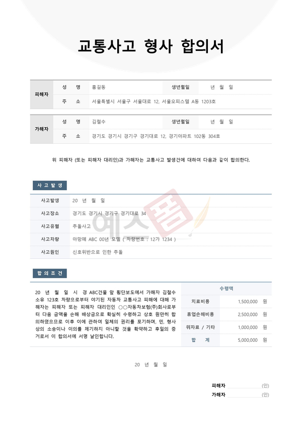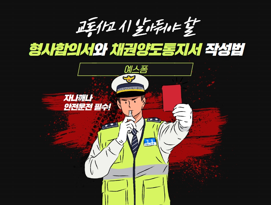 오늘은 예스폼과 함께 교통사고 시 형사합의서와 채권양도통지서 작성법에 대해서 알아보도록 하겠습니다.