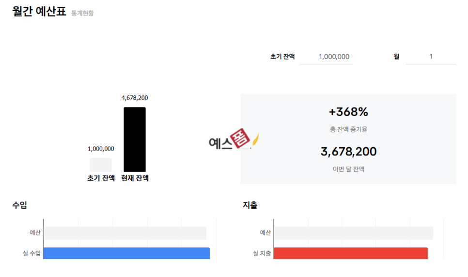 - 월간 예산표와 연동하여 자동 업데이트