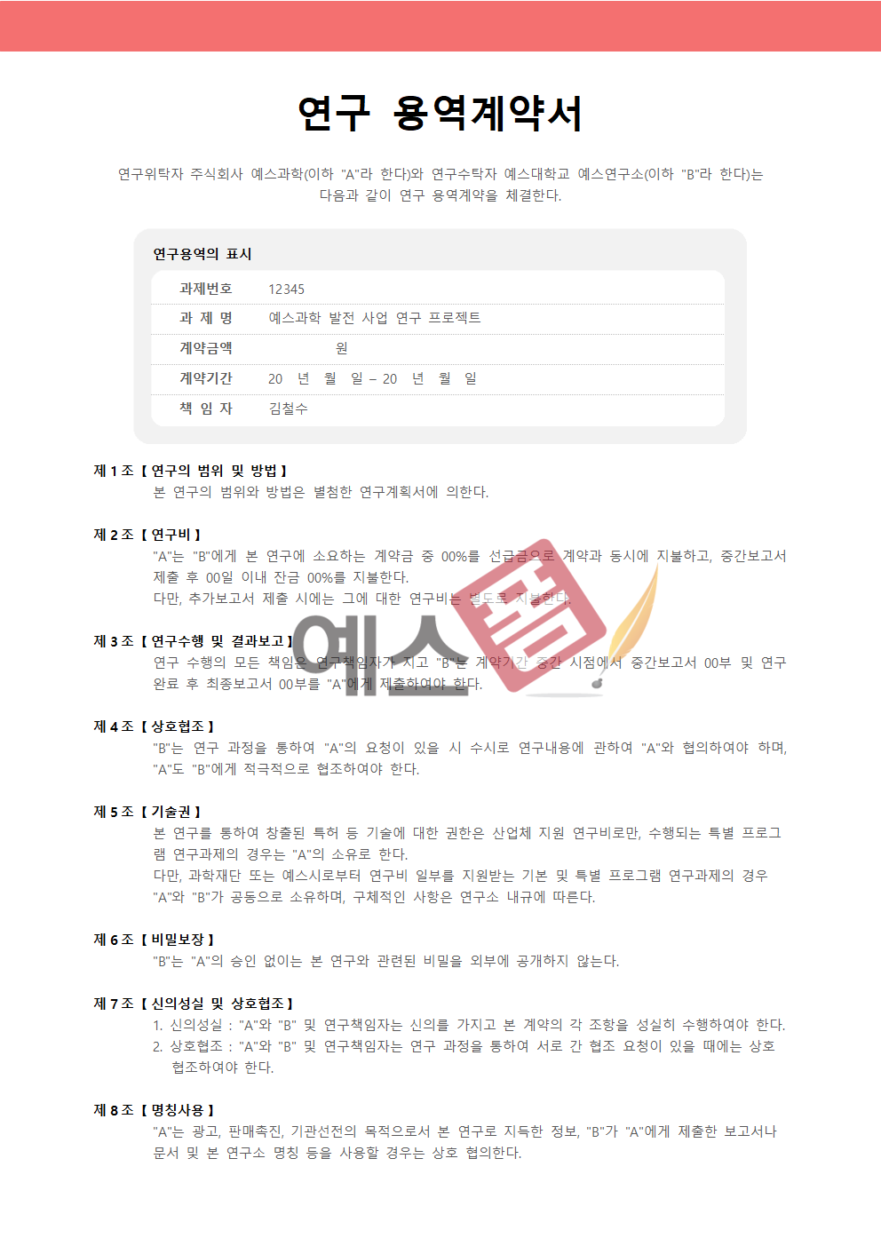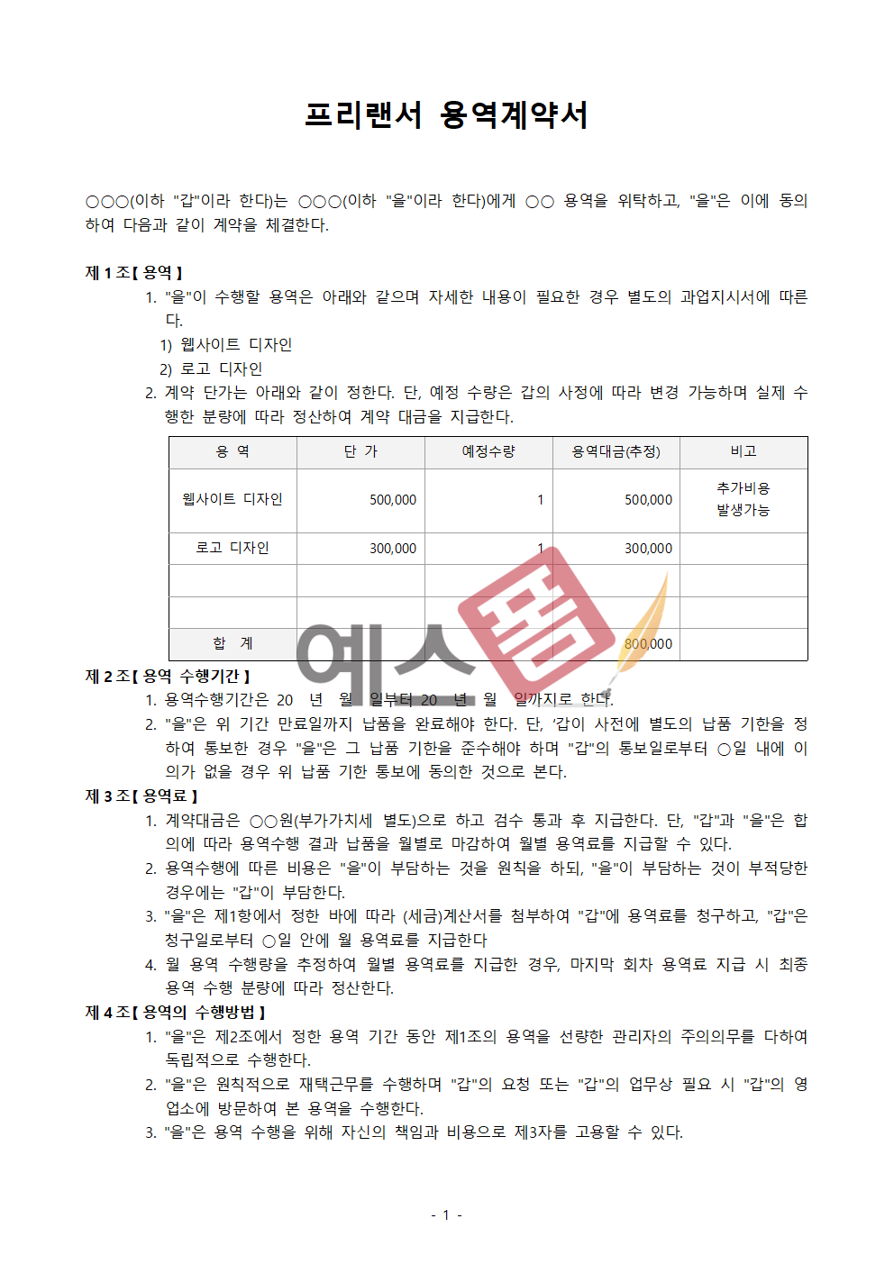 | 프피랜서 용역계약서 | 개발 용역계약서 | 연구 용역계약서 |