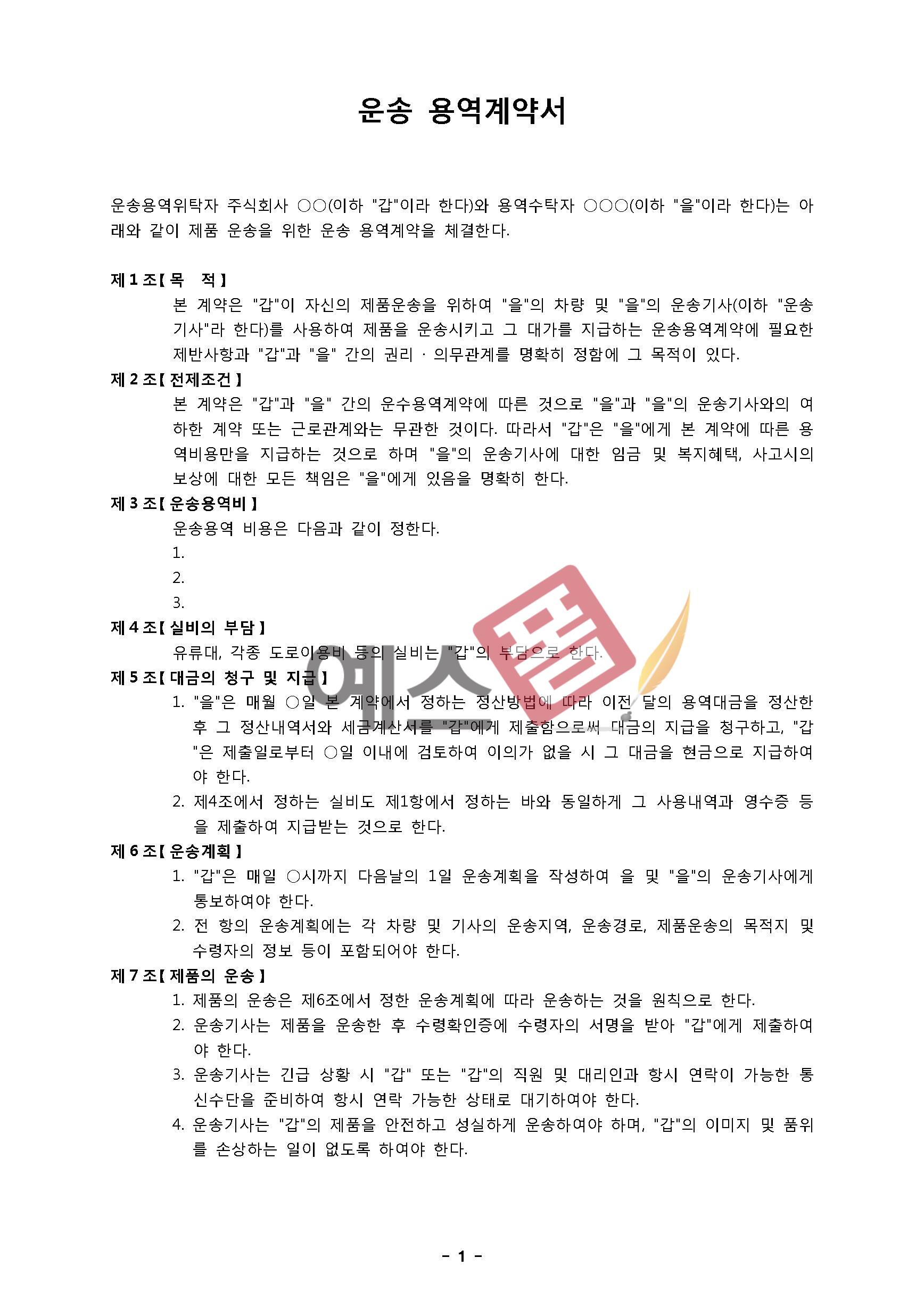 | 프리랜서 용역 계약서 | 운송 용역계약서 |