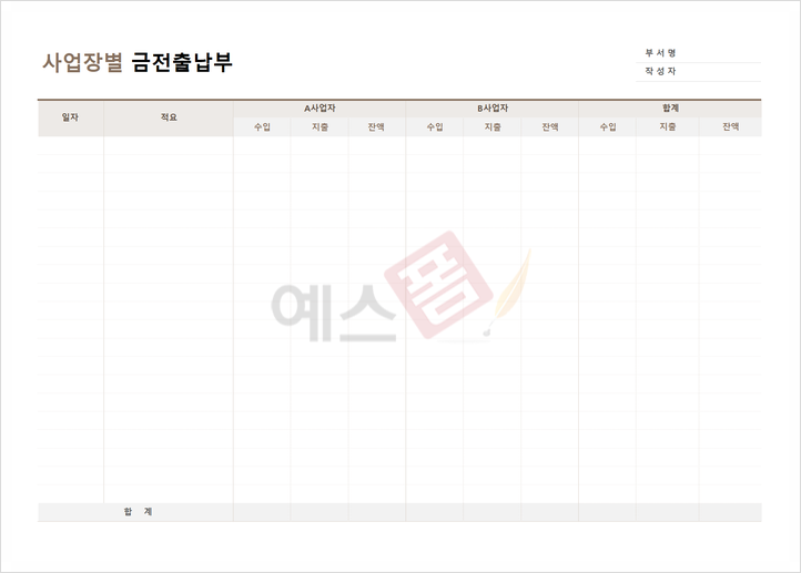 예스폼 사업장별 금전출납부