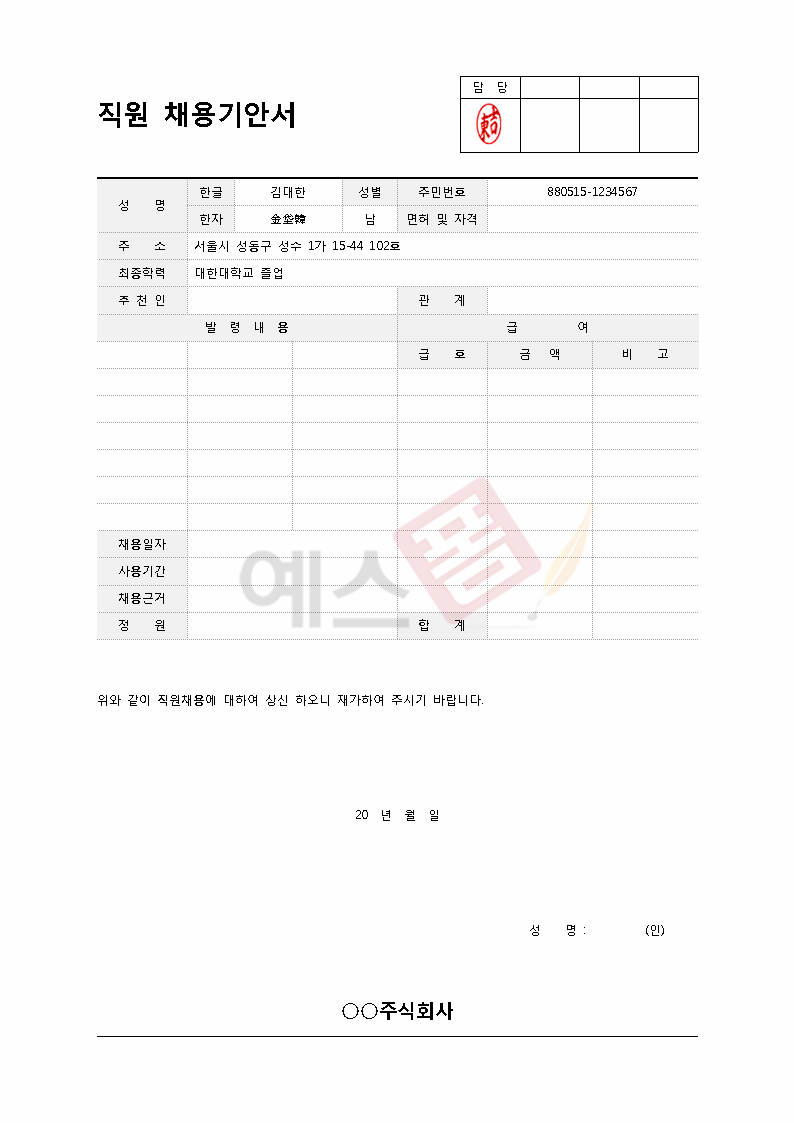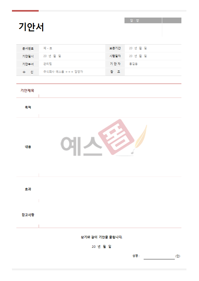 기안서 양식 서식.샘플 문서자료