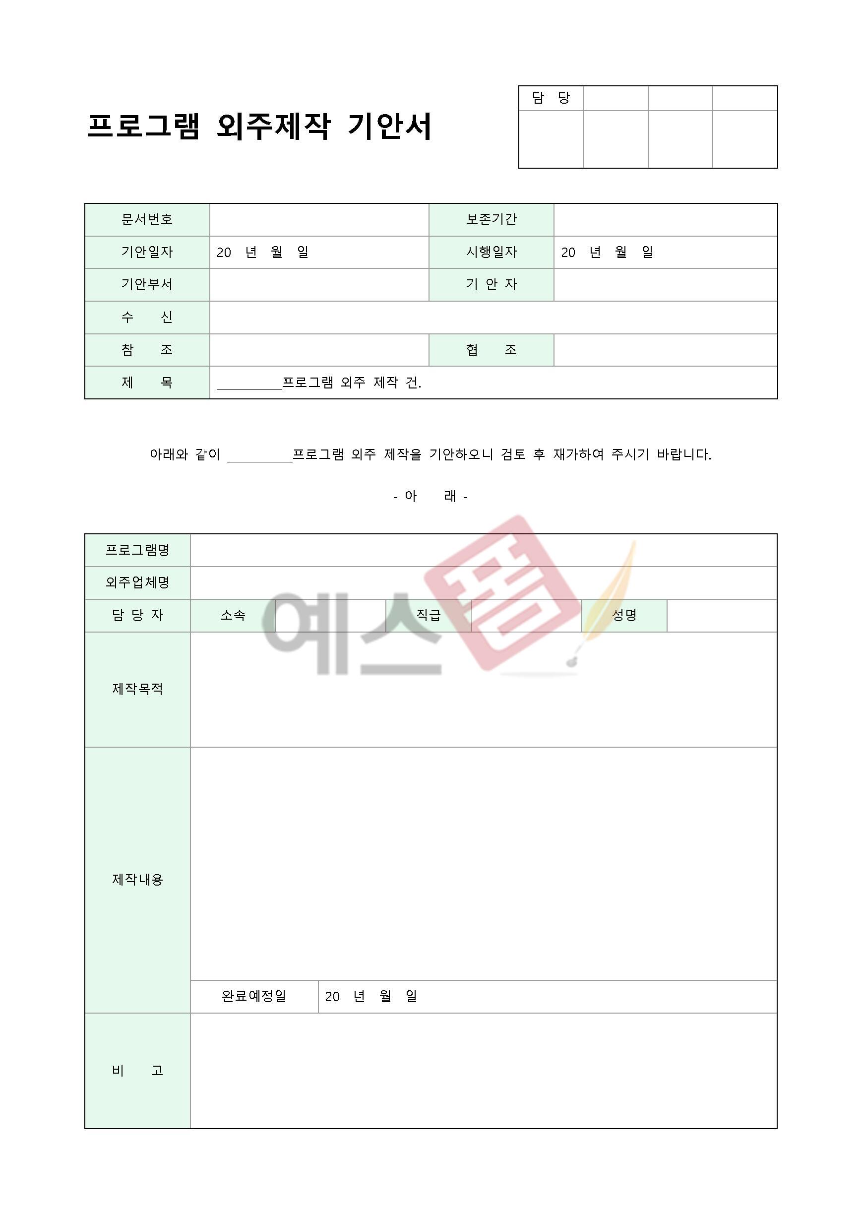 | 발주기안서 | 프로그램 외주제작 기안서 | 직원 채용기안서 |