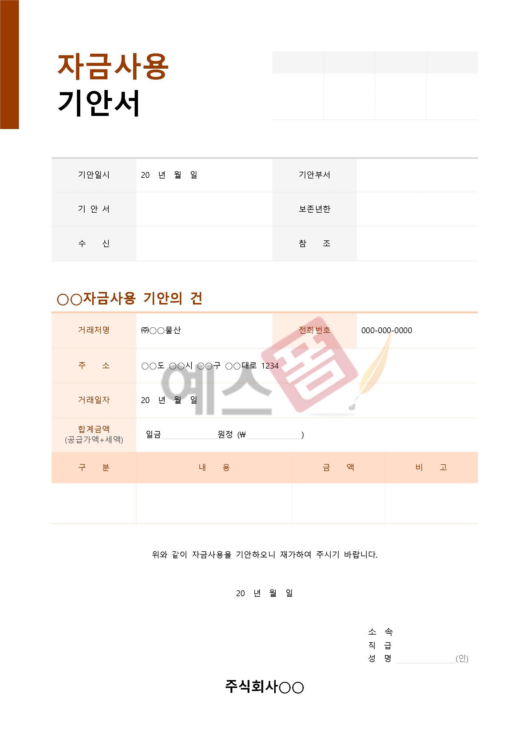 | 자금사용기안서 | 기안서(전결규정 기준표의 전결사항) | 행사 기안서 |