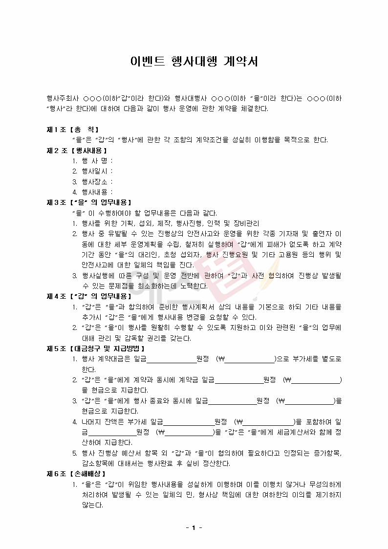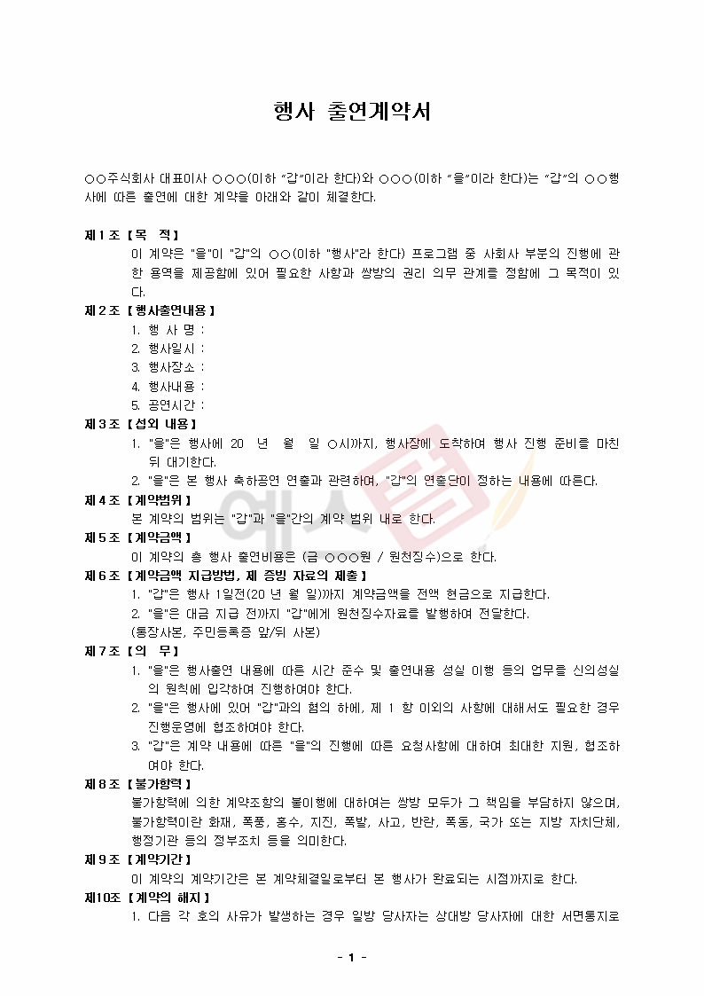 | 이벤트 행사대행 계약서 | 행사계약서 (행사진행/사회/MC) |