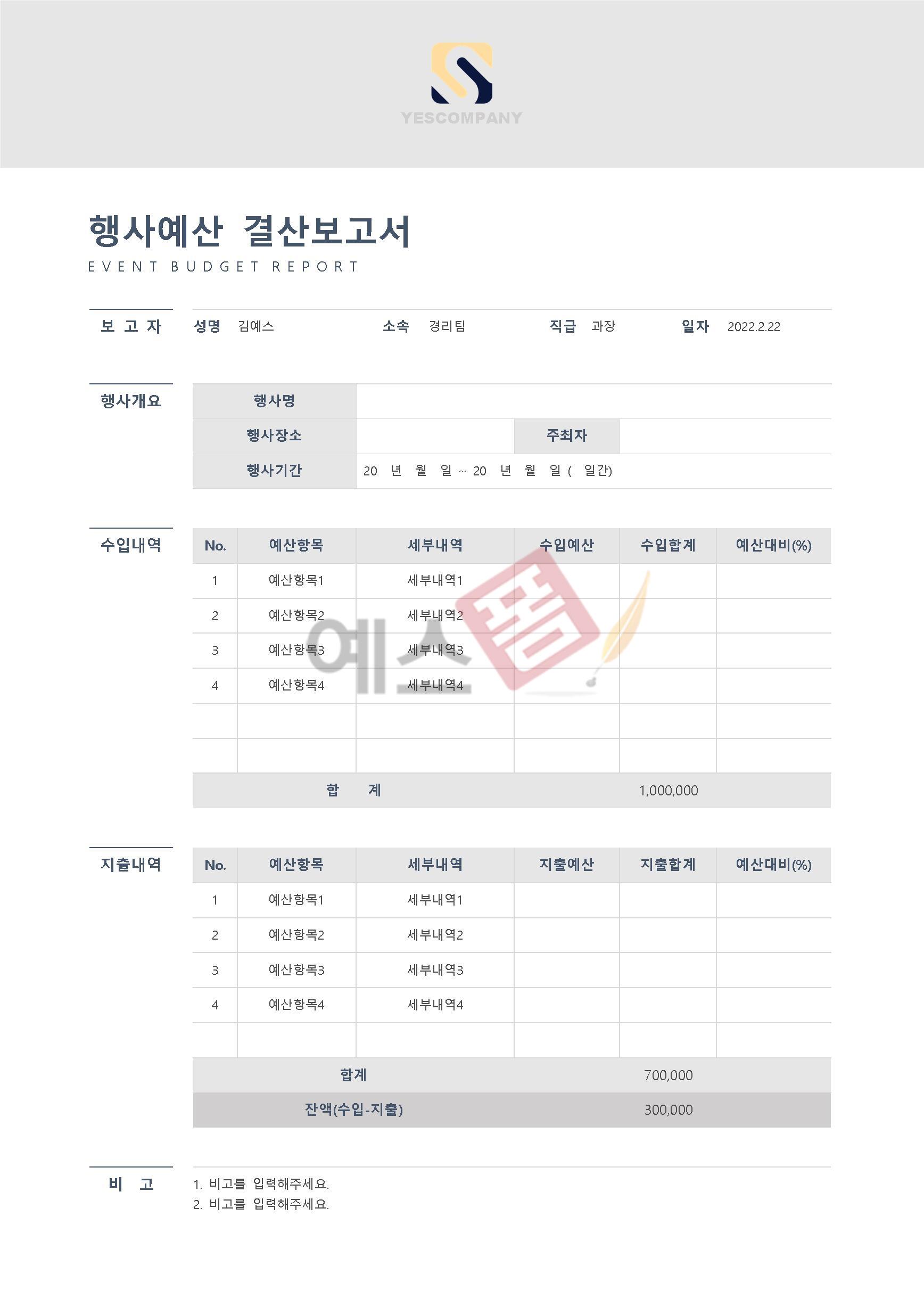 직장인 분들을 위해 예스폼에서는 다양한 행사 관련 양식을 서비스하고 있습니다. 행사 기획안, 견적서, 초대장, 안내문 등 다양한 양식을 활용해 보시기 바랍니다.